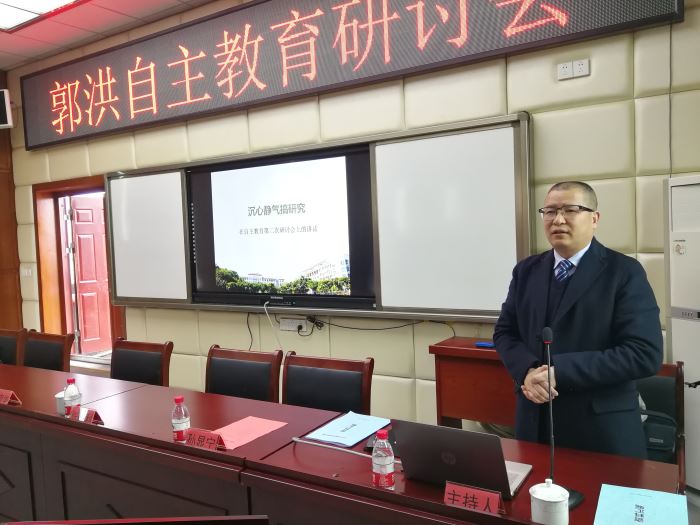 铜梁区大庙中学罗国强校长代表学校对参会的各位领导和老师表示欢迎,他从宣传发动、理论学习、课题研究等方面介绍了大庙中学在自主教育工作上所做出的努力及取得的成果。他表示学校在自主教育实践中尝到了甜头,2019年他们将继续探索和勇于尝试,让自主教育在大庙中学生根发芽。