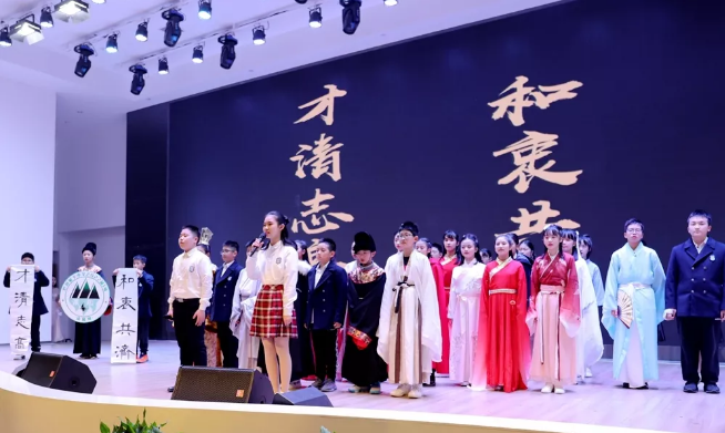 逐梦10班以梦为马,展开了“量子金马奖”的角逐;傲洋5班乘坐着傲洋号扬帆起航,依靠团队力量,战胜风暴;国际班通过一场中西合璧的知识竞赛诠释何为“中国灵魂,世界眼光”。振翼6班破茧成蝶、景行9班书院招贤,志远4班匠心筑梦……一班一文化,一班一世界,12个“成长与梦想”的故事被孩子们出色演绎,展现出他们宽阔的视野和灵动的表现力。