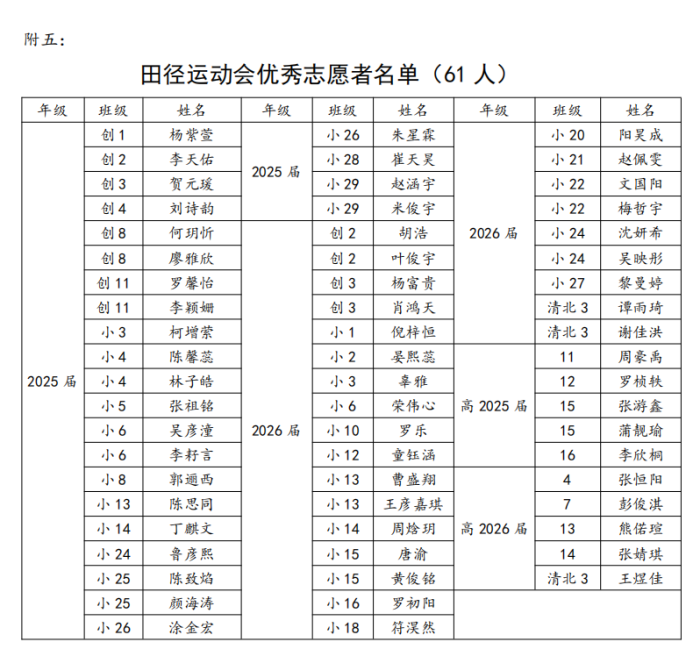 附三:优秀运动员名单; 附四:最美志愿者名单;