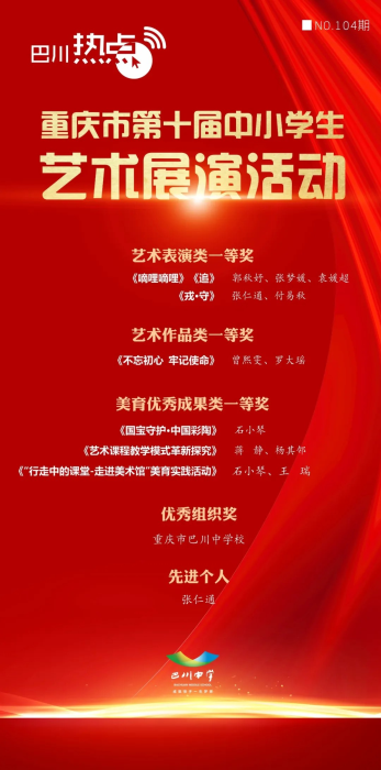 在对的时间,对的地点,我们总可以看见孩子的耀眼夺目。就如在刚刚过去的“重庆市第十届中小学生艺术展演活动”中,巴川的孩子荣获了多个一等奖。