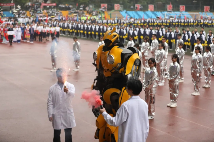 STEAM创新教育学部既是科学的探索者,也是艺术的创造者。他们以“如何通过创新学子和道具的配合,演绎出STEAM 5G速度、STEAM创新教育学部5大能力和STEAM号火箭腾飞的运动会开幕式效果”为核心驱动问题,巧妙地组织了一场以“5G加速,创新腾飞”为主题的项目式运动会开幕式表演。