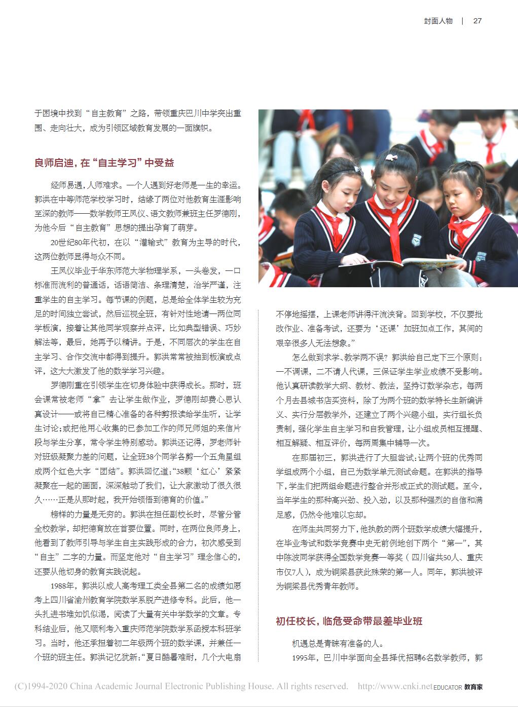 《教育家》杂志专访——在泥泞中蹚出自主教育路_访重庆必威登录首页大全官网总校长郭洪_吴爽