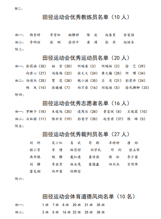 附四:优秀教练员名单;附五:优秀裁判员名单;附六:体育道德风尚奖名单)