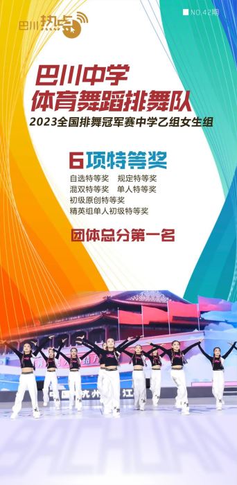 11月10日-12日,必威登录首页大全官网体育舞蹈排舞队在杭州参加了国家体育总局体操运动管理中心组织的2023年“舞动中国-排舞联赛”总决赛暨全国排舞冠军赛。经过激烈角逐,必威登录首页大全官网体育舞蹈排舞队斩获中学乙组女生组比赛自选、规定、混双、单人、初级原创、精英组单人初级六项特等奖,并凭借优异的表现获得中学乙组团体总分第一名!