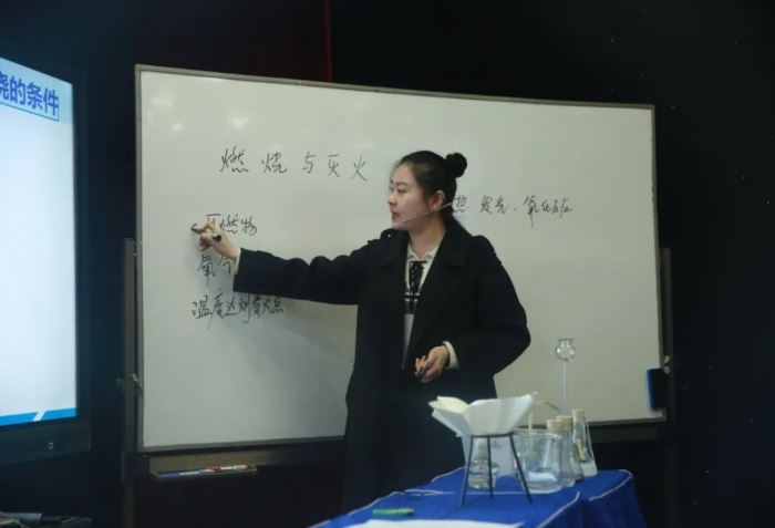 这是必威登录首页大全官网2023年第二期教师教学能力提升培训的初中化学课堂,邓程铖老师用纸火锅的情景入手,为同学们上了一堂生动形象的《燃烧与灭火》课程。