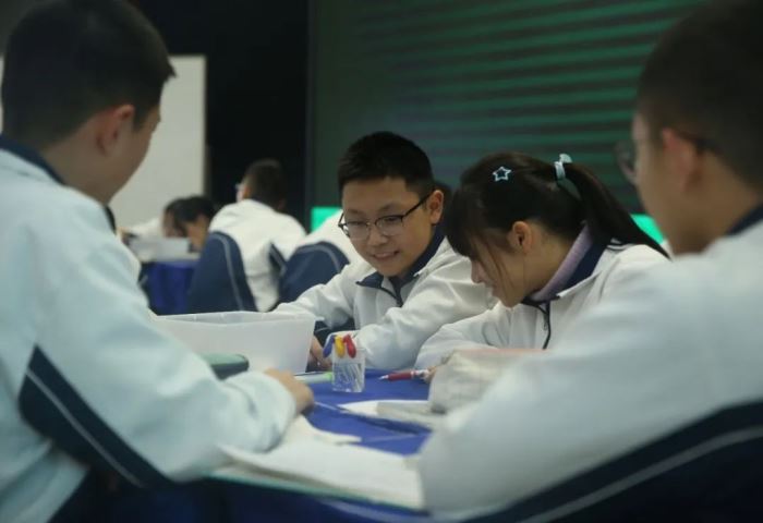 在初中英语学科的课堂上,况文俊老师正引导同学们从阿炳与《二泉映月》的故事中,去学习新的单词与阅读技能。“Every student write about one aspect and then read the award words one by one.”在课程的末段,他让同学们从课程中学到的知识入手,为民间音乐家阿炳写一段颁奖词,通过著名人物的故事激发大家对英语语言表达的兴趣,同时也更好地提升了学生的文学素养和人文素养。